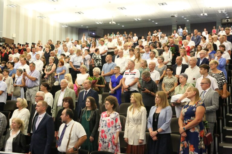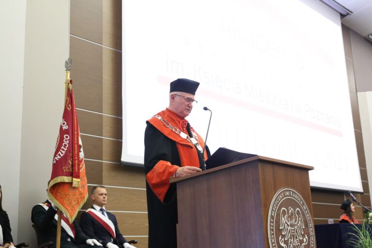 Wzorem lat ubiegłych 8 lipca br. odbyło się Absolutorium Studentów Akademii Nauk Stosowanych im. Księcia Mieszka I w Poznaniu. Już około godziny 11 pod budynkiem, w którym zaplanowano uroczystość można było spotkać Studentów i ich najbliższych ubranych odświętnie w radosnych nastrojach, niosących bukiety kwiatów, którzy zatrzymywali się w celu wykonania pamiątkowych fotografii zmierzając powoli, lecz konsekwentnie ku drzwiom pięknie udekorowanej auli.