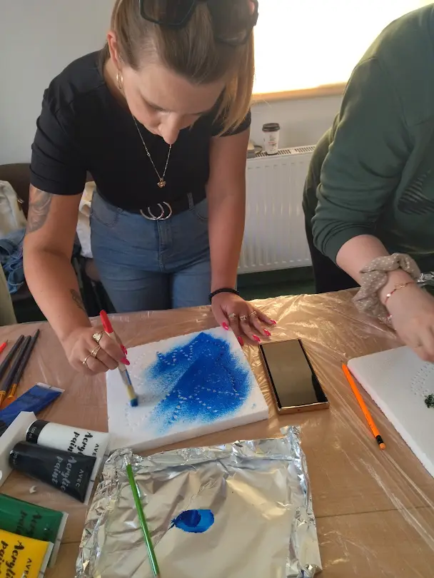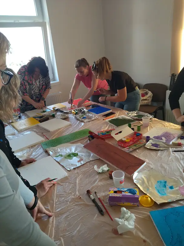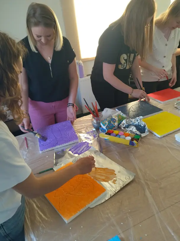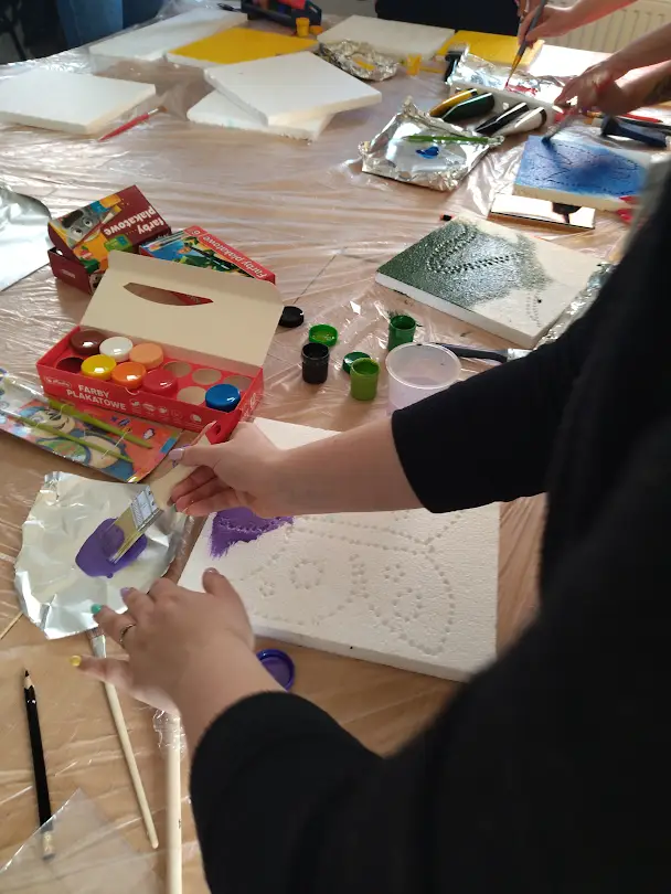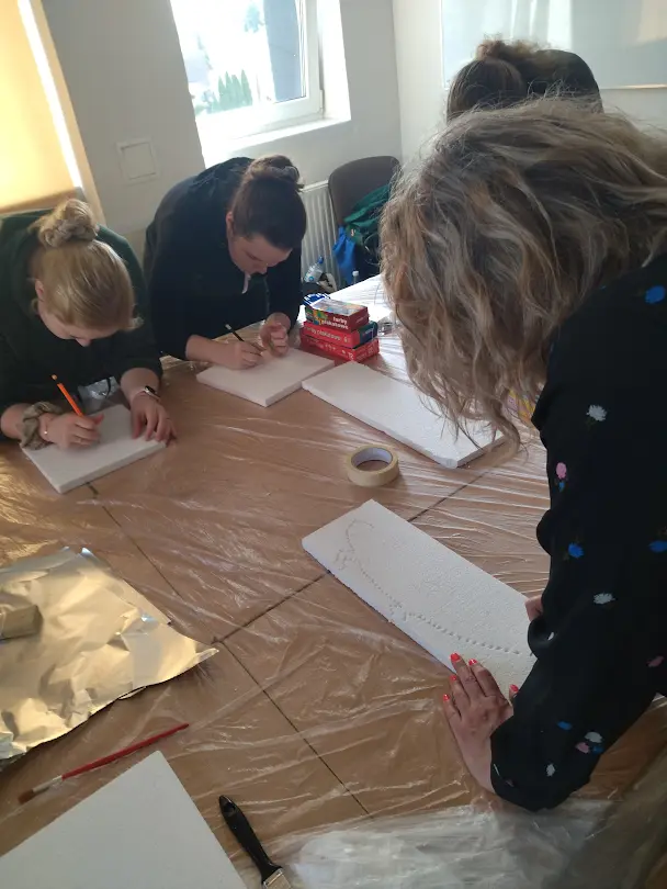 Studentki IV roku Pedagogiki przedszkolnej i wczesnoszkolnej podczas zajęć Metodyki edukacji plastycznej dla młodszych dzieci szkolnych, poznają w formie warsztatowej m.in. nietypowe techniki plastyczne. Papier, płótno, drewno, folia – to nie jedyne podłoża do malowania farbami. Ostatnio, pod kierunkiem mgr Róży Sawali, testowały malowanie na styropianie.