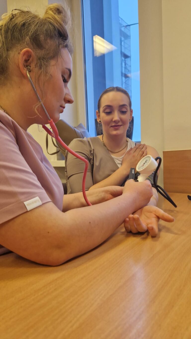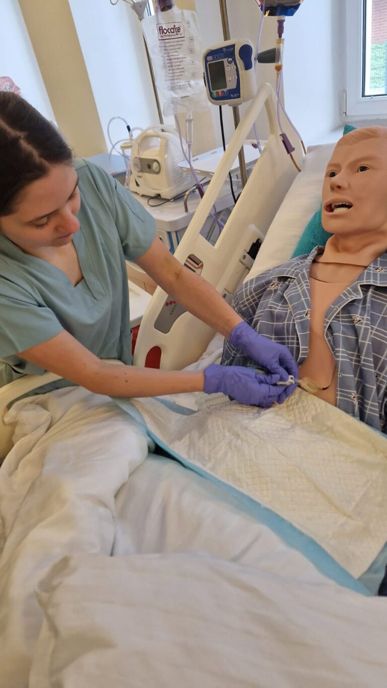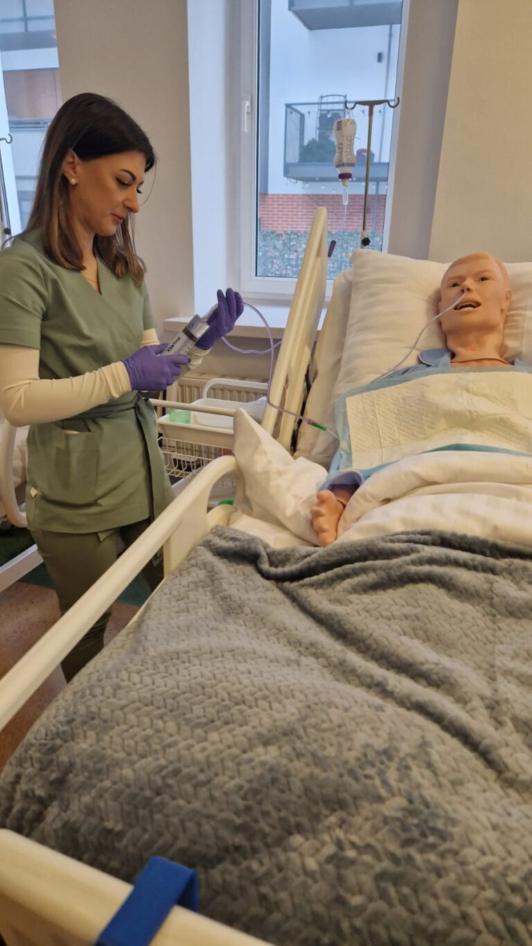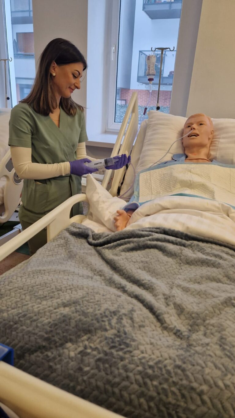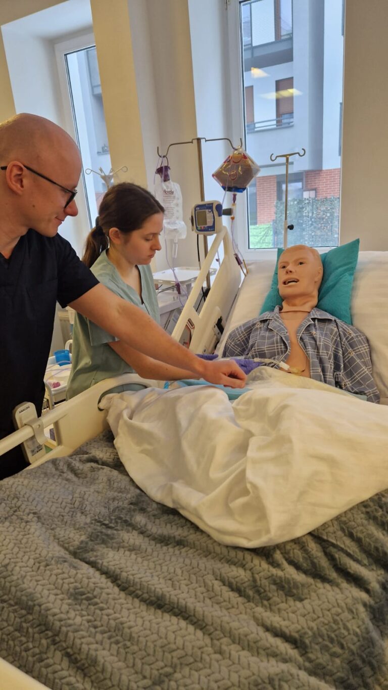 Studenci pielęgniarstwa🩺 wrócili do swoich zajęć z ogromnym zapałem💪 Na trzecim roku studiów I stopnia zgłębiali praktyczne aspekty terapii w obrębie układu oddechowego. Natomiast studenci pierwszego roku praktykowali m.in. procedury związane z żywieniem drogą enteralną, dokonywali pomiarów parametrów życiowych oraz realizowali rutynowe czynności pielęgnacyjne😲