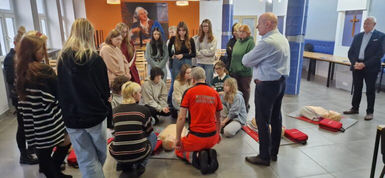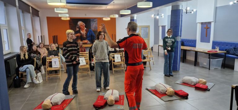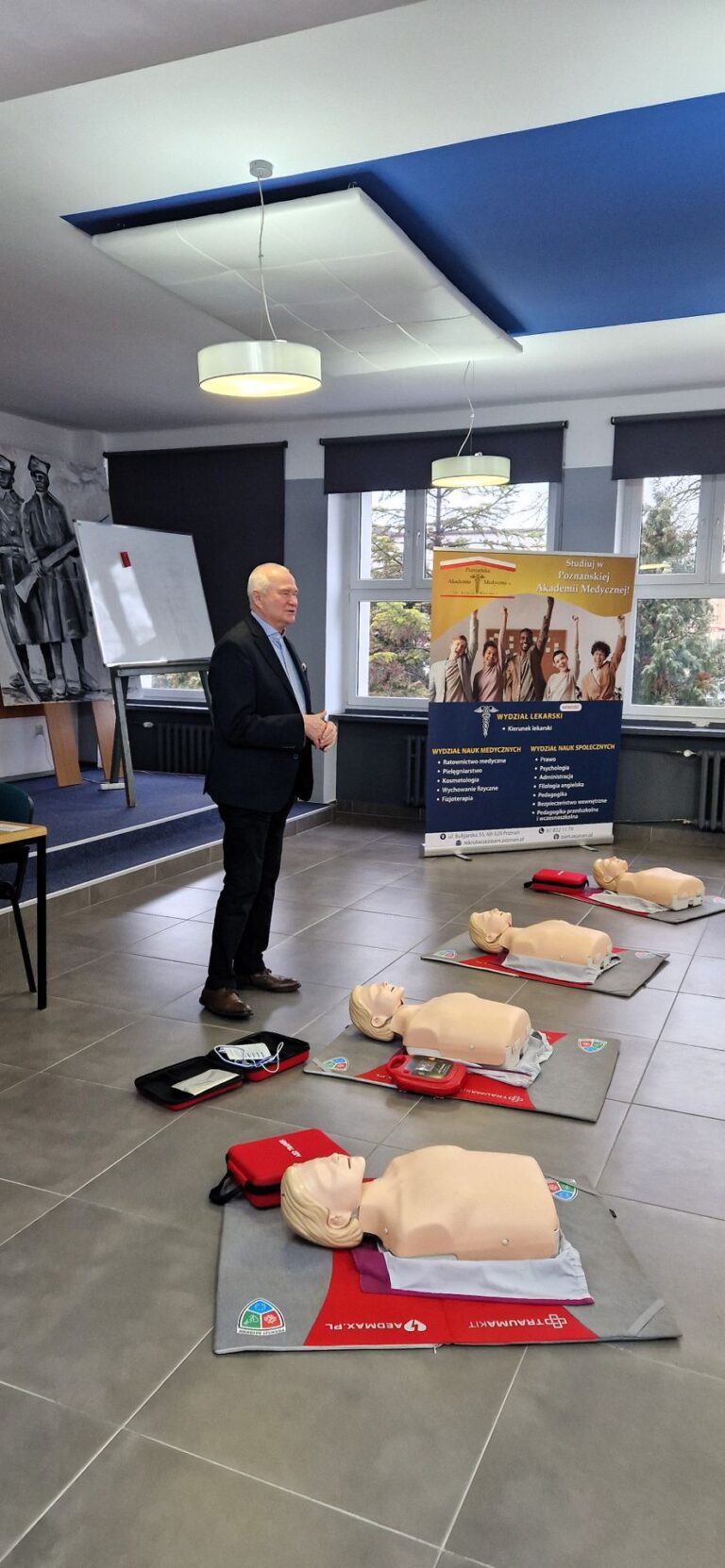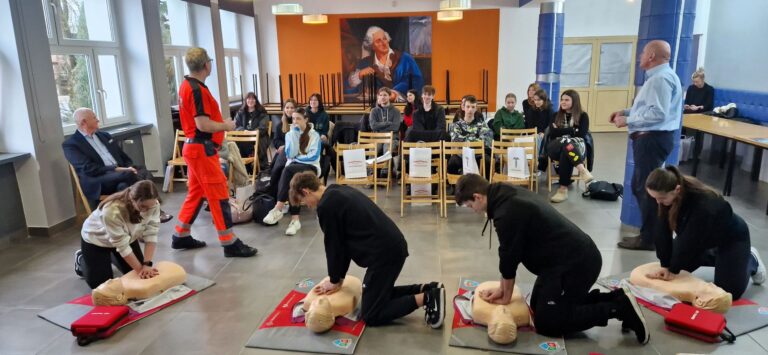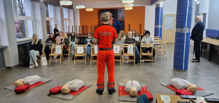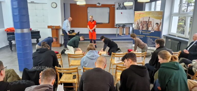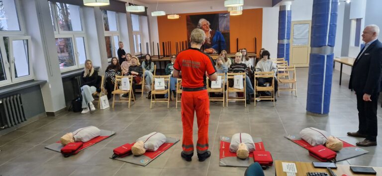 Przedstawiciele Poznańskiej Akademii Medycznej gościli w Zespole Szkół Mechanicznych im. KEN w Poznaniu. Osoby prowadzące spotkania z klasami maturalnymi Szkoły przedstawiły szeroką ofertę studiów oraz zorganizowały warsztaty, podczas których maturzyści mogli zdobyć wiedzę z zakresu pierwszej pomocy. Po części teoretycznej, przeszliśmy do praktyki. Pod okiem ratownika medycznego uczniowie przeprowadzali resuscytację oraz uczyli się posługiwać defibrylatorem AED.