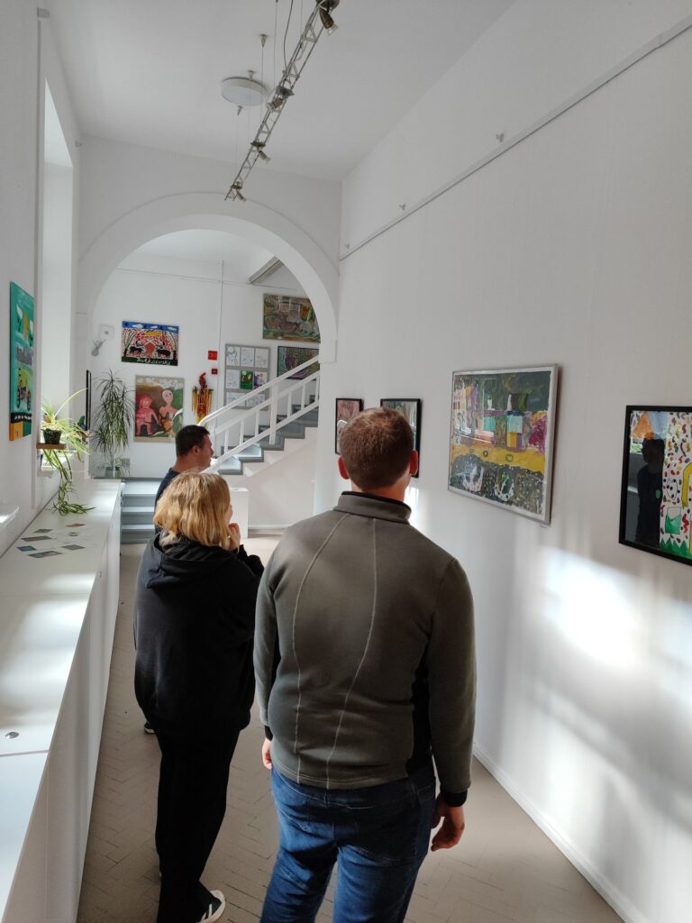 Studenci mieli okazję porozmawiać z Panią Magdaleną Kozicką osobą prowadzącą zajęcia arteterapii oraz artystami z Zespołem Downa i ich rodzicami o twórczości artystycznej osób z niepełnosprawnością intelektualną.