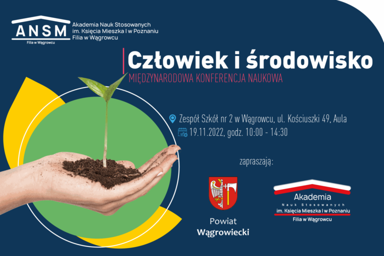 Mamy przyjemność zaprosić Państwa do biernego udziału w międzynarodowej konferencji naukowej pod hasłem „Człowiek i środowisko” organizowanej przez Wydział Nauk Społecznych Akademii Nauk Stosowanych im. Księcia Mieszka I w Wągrowcu we współpracy z Powiatem Wągrowieckim. Wystąpienia konferencyjne gości z Polski i ze Szwajcarii podejmą zagadnienia związane z filozoficznym, społecznym, psychologicznym oraz administracyjnym aspektem współzależności człowieka i jego środowiska. Relację między człowiekiem a naturą można rozpatrywać wielowymiarowo i z wielu perspektyw. Mamy zatem nadzieję, że wydarzenie, na które Państwa zapraszamy, będzie okazją do wielowątkowej refleksji naukowej oraz wzajemnej wymiany poglądów i obserwacji.