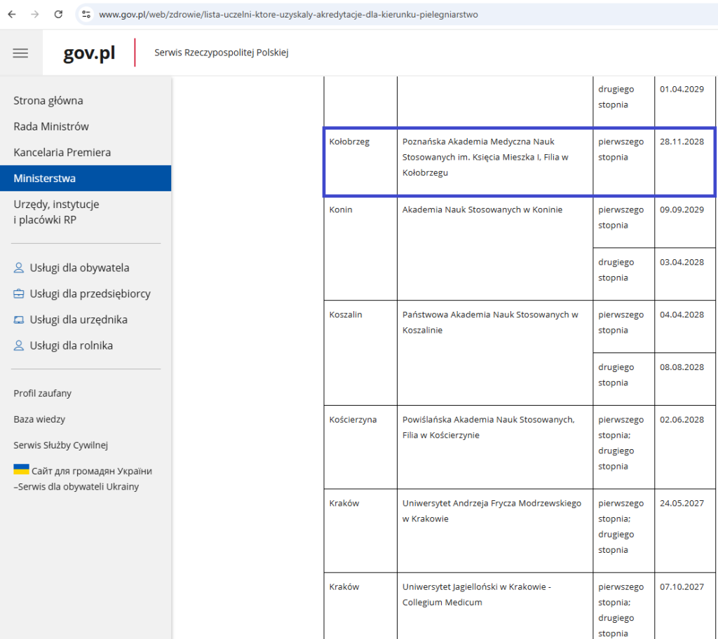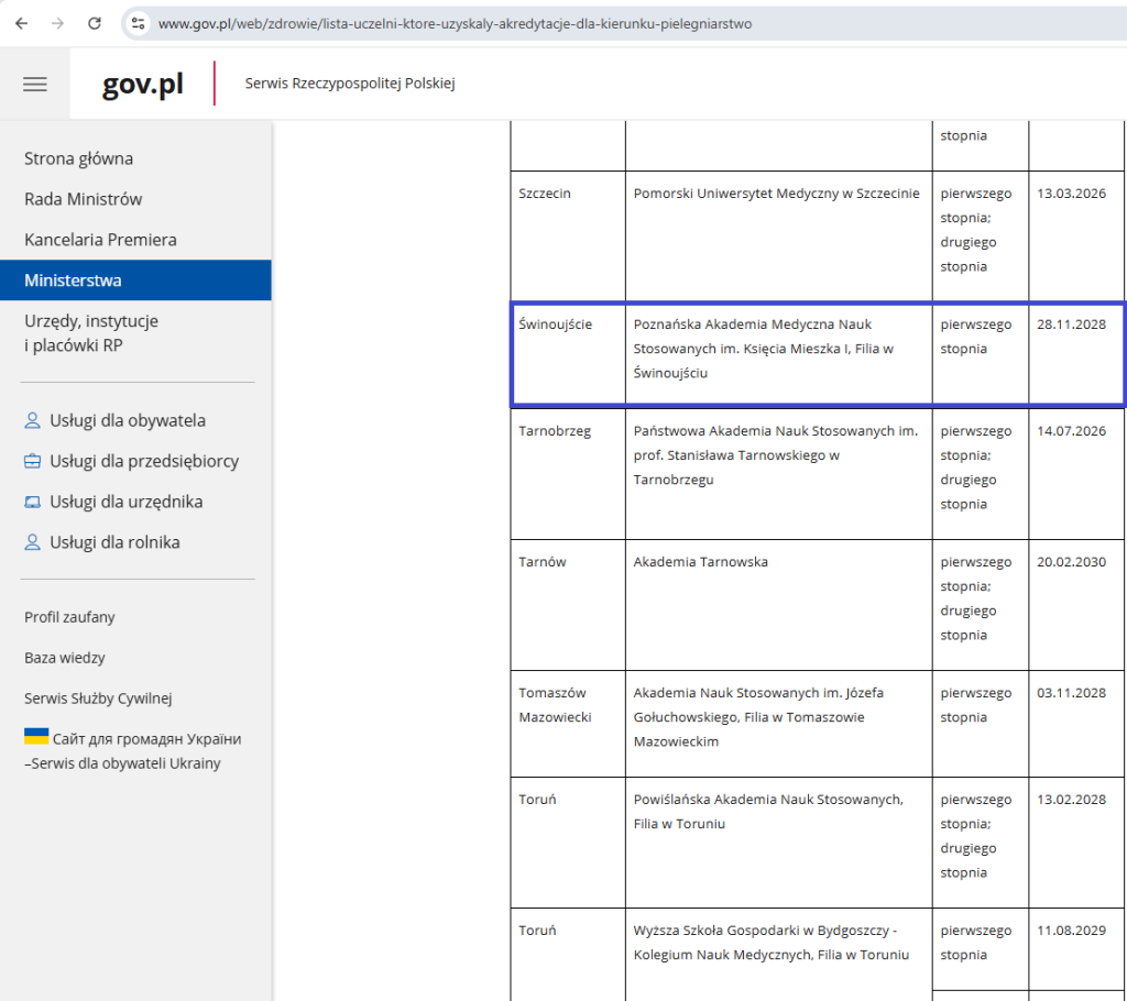Kolejna dobra wiadomość, opublikowano listę uczelni, które uzyskały akredytację Ministra Zdrowia dla kierunku pielęgniarstwo. Wśród wyróżnionych jednostek znalazły się również filie w Kołobrzegu oraz w Świnoujściu.