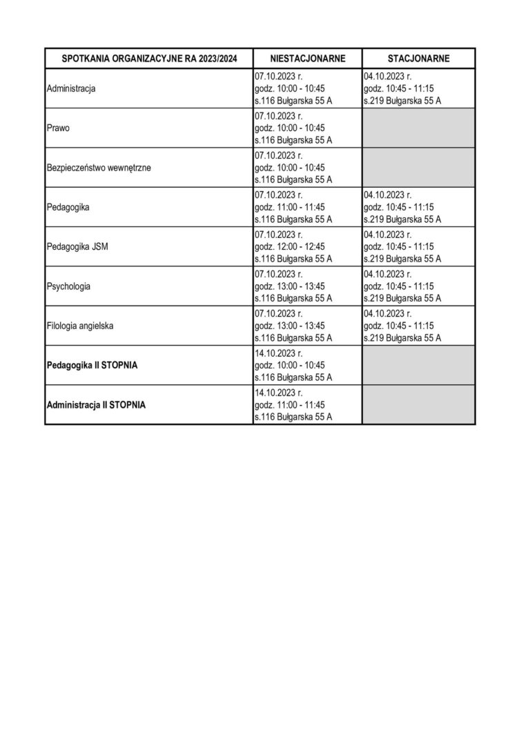 Informujemy, że spotkania organizacyjne studentów pierwszego rocznika Wydziału Nauk Społecznych odbędą się w dniach: