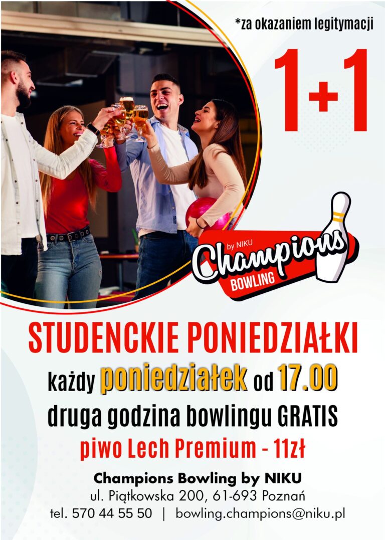 niedługo rozpocznie się nowy rok akademicki, ale nie samą nauką żyją studenci. Kręgielnia Champions Bowling by Niku zaprasza Was do udziału w cyklicznych wydarzeniach jakim będą Studenckie Poniedziałki. Akcja rusza od 3 października o 17:00.